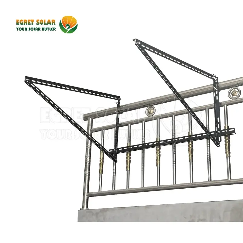 Če ima vaš dom ravno streho ali navpično streho, lahko namestite zložljivo nastavljivo nagib trikotnika. Če ga želite namestiti na balkonsko ograjo, lahko uporabite kljuke. Če gre za leseno streho, lahko za pritrditev spodnjega žarka uporabite vijake za samopiranje. Betonske strehe je mogoče namestiti z namestitvijo uteži ali z uporabo ekspanzijskih vijakov.