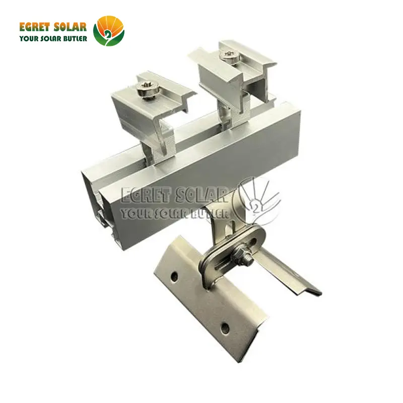 Struktura za pritrditev strehe za sončno trapezoidno kovino Egret je zanesljiva rešitev za sončne matrike na teh specifičnih trapezoidnih strehi. Prilagodljivost in oblikovanje ponuja prilagodljivost in učinkovitost monterjev.