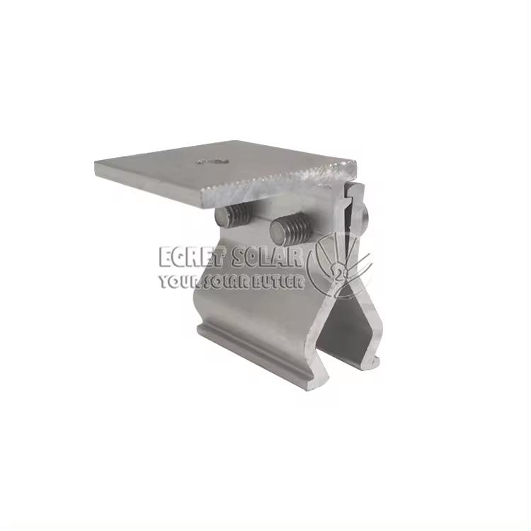 Egret Solar Aluminium Standing Seam Clamp Solar Metal Roof Montažna vrsta strešne spone se uporablja na kovinski strehi, njena prednost pa je, da ni potrebe po prebijanju strehe, tako da se stranke ne bodo bale, da bo dež stekel v streha.