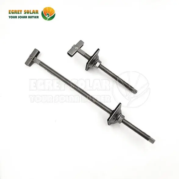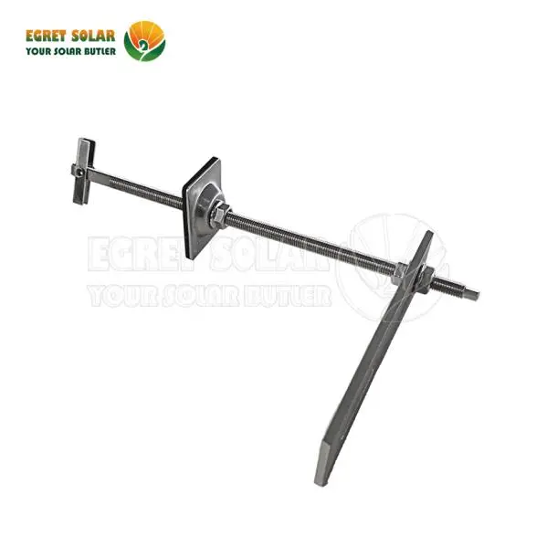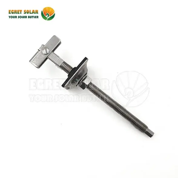 Ta fotovoltaični vijak je kot pritrdilna komponenta za sončno pritrdilno konstrukcijo inovativna zasnova za jekleno ali leseno žarek. Omogoča visoko učinkovito rešitev za namestitev sončne plošče.